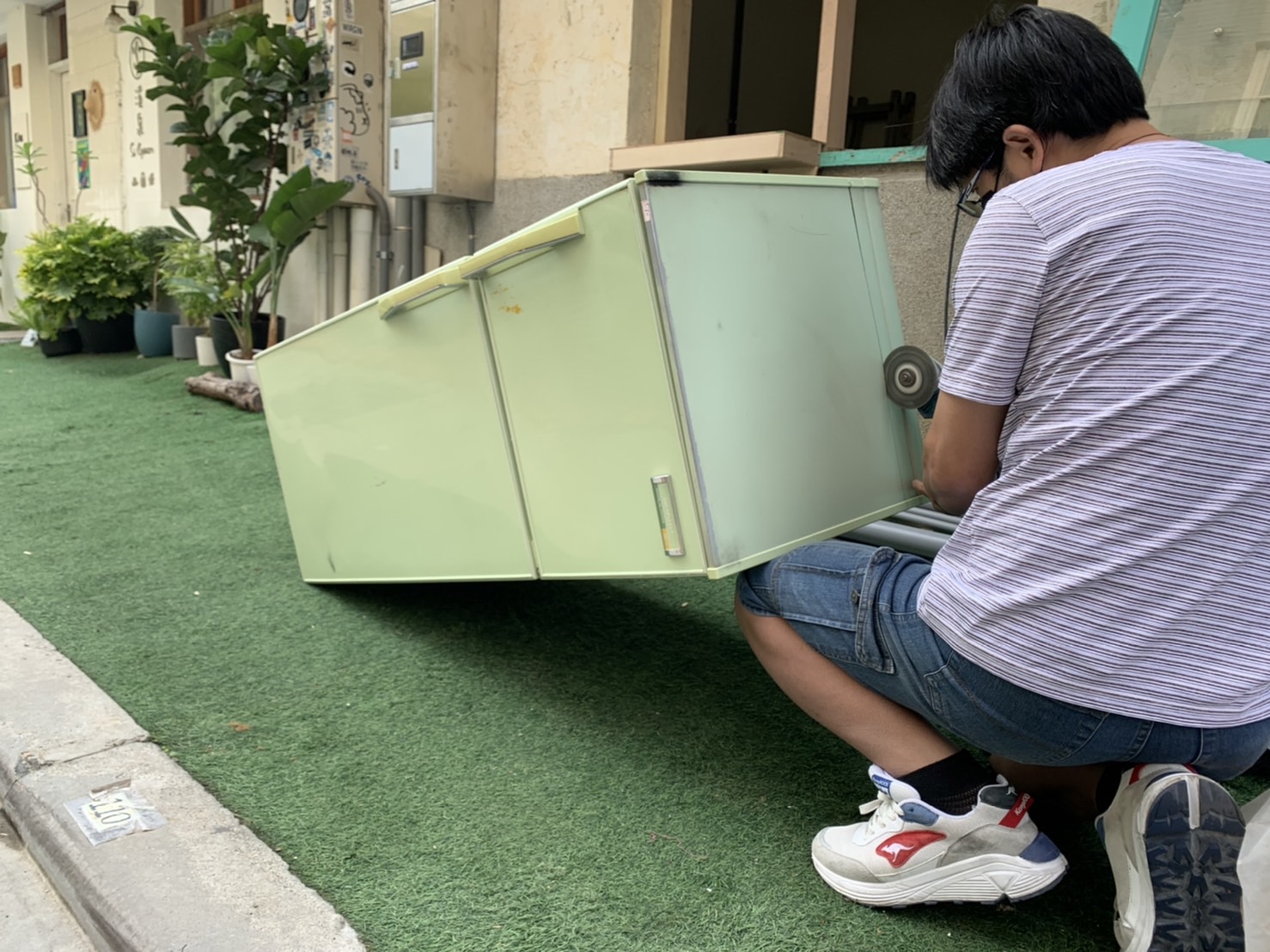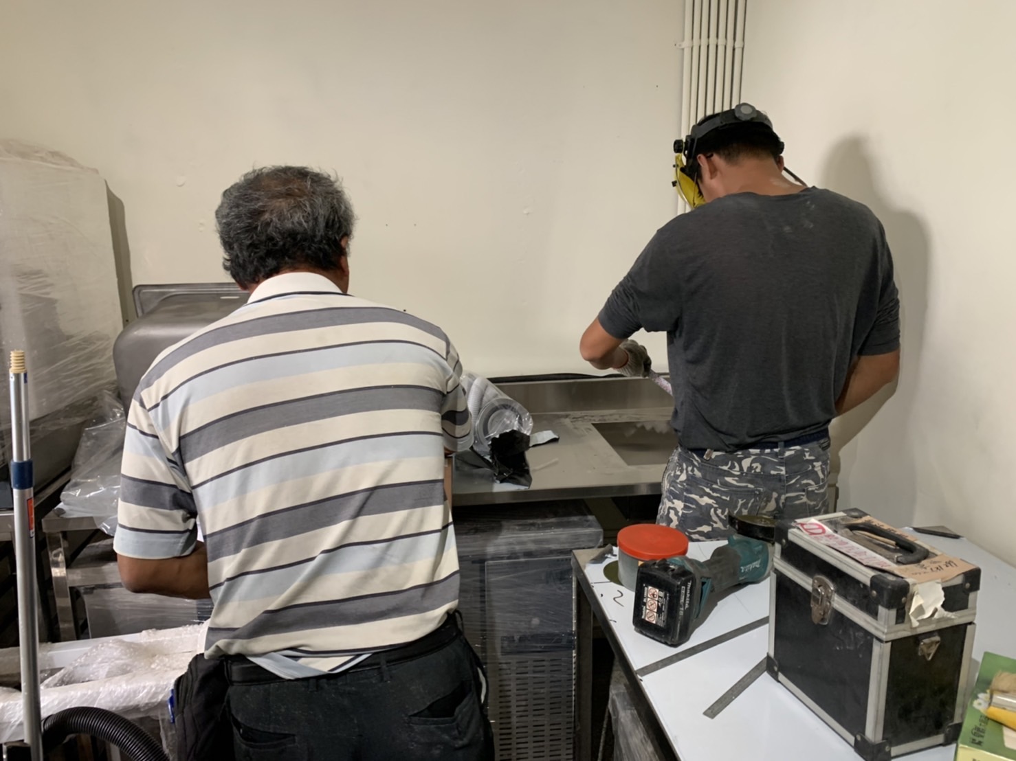 (4)冰箱切割:特殊切割風險性高,但該來的還是要來,我們只好懷著忐忑的心情,請師傅備好手工具,現場依情況調整,好在切割工作順利,安上去的那一刻,我的鼻塞都通了。