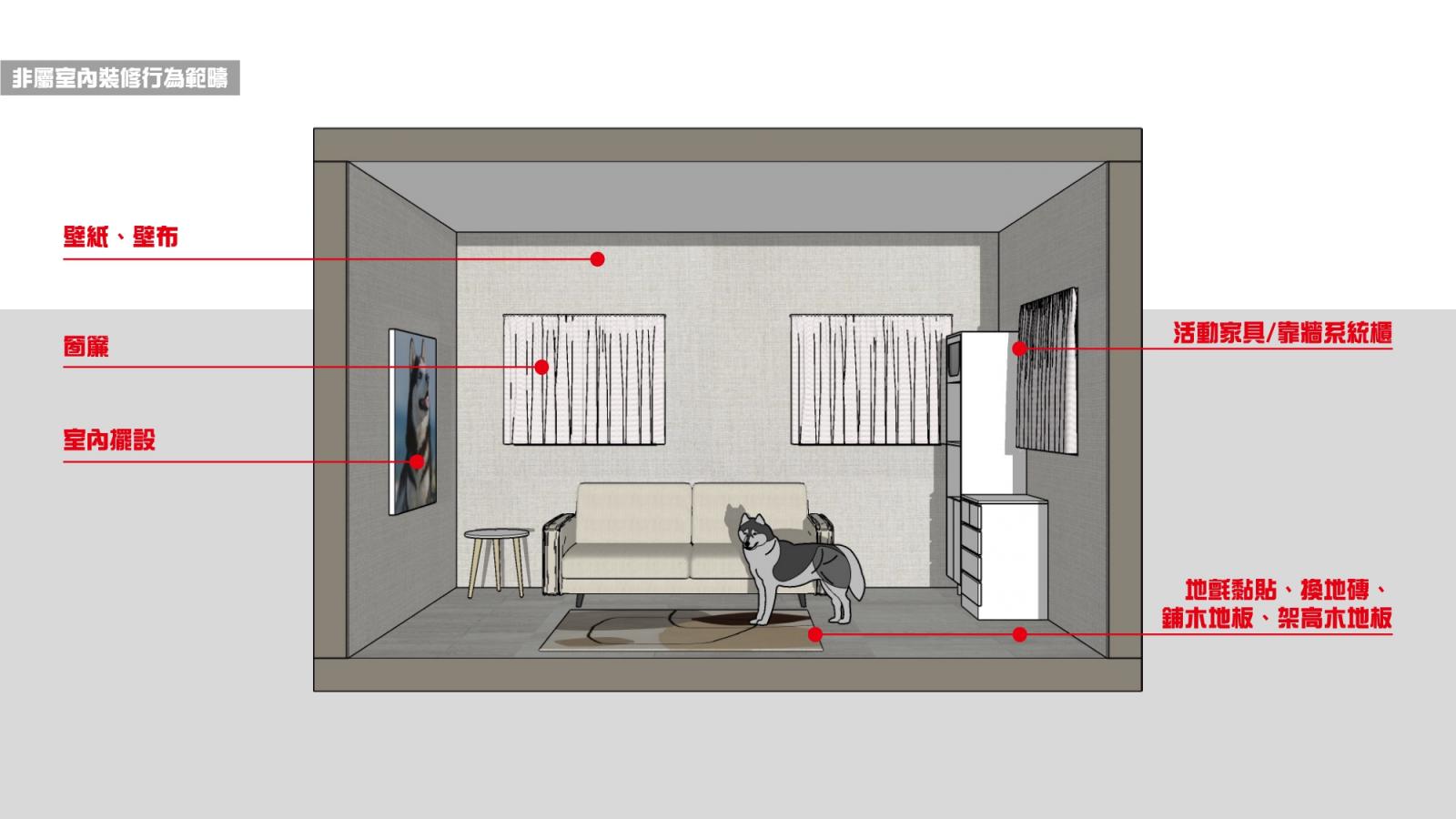 ▲黏貼或擺設基本上不用,養哈士奇拆家也不用申請。