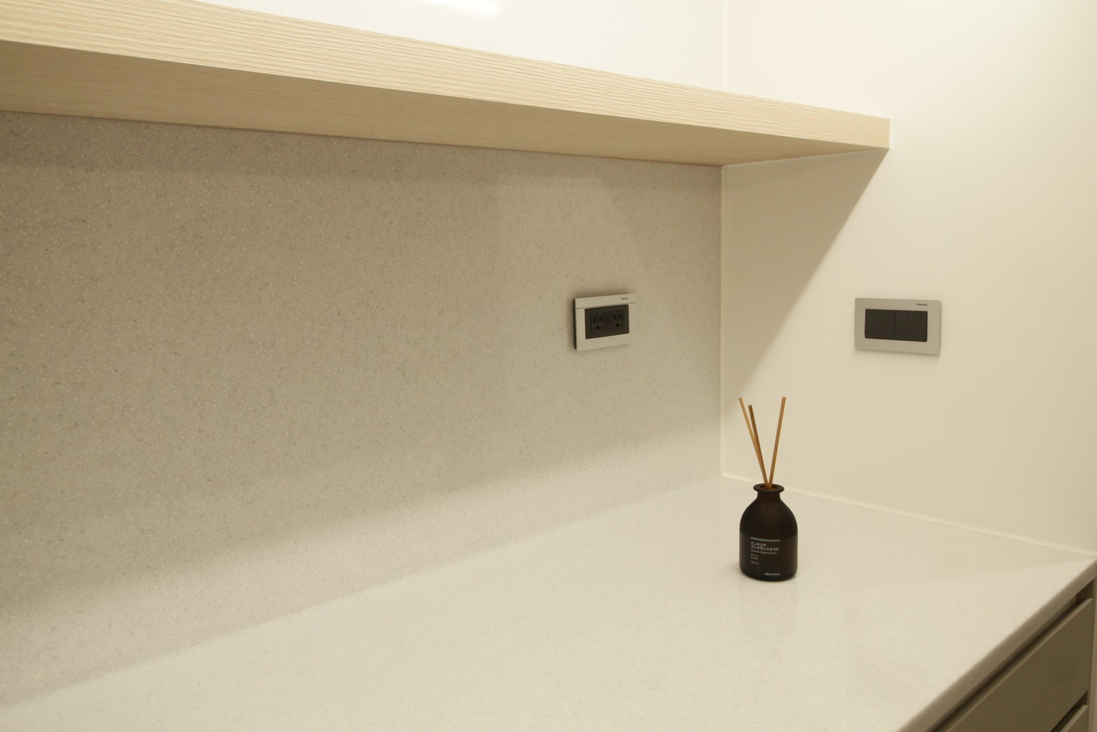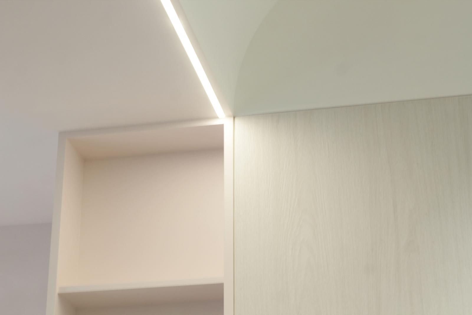 櫃體使用粉色烤漆,柔化空間的稜角,淡化曾經的使用痕跡