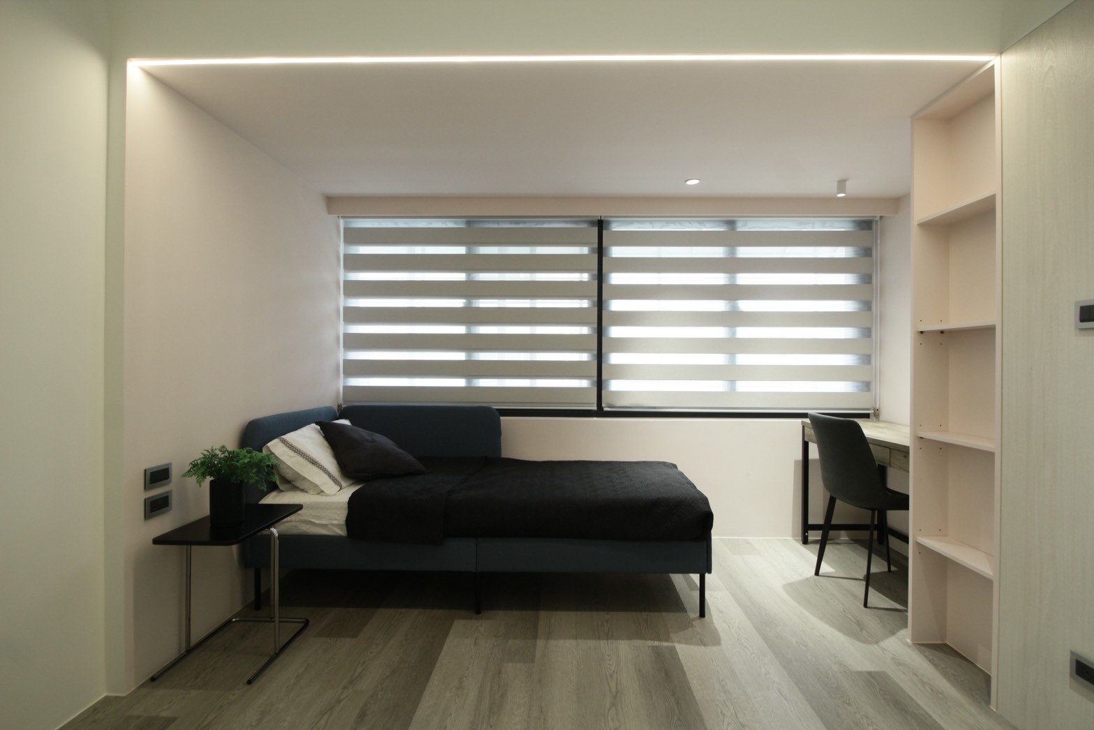 主臥和書房以滑門做區隔,區分成兩個使用空間。